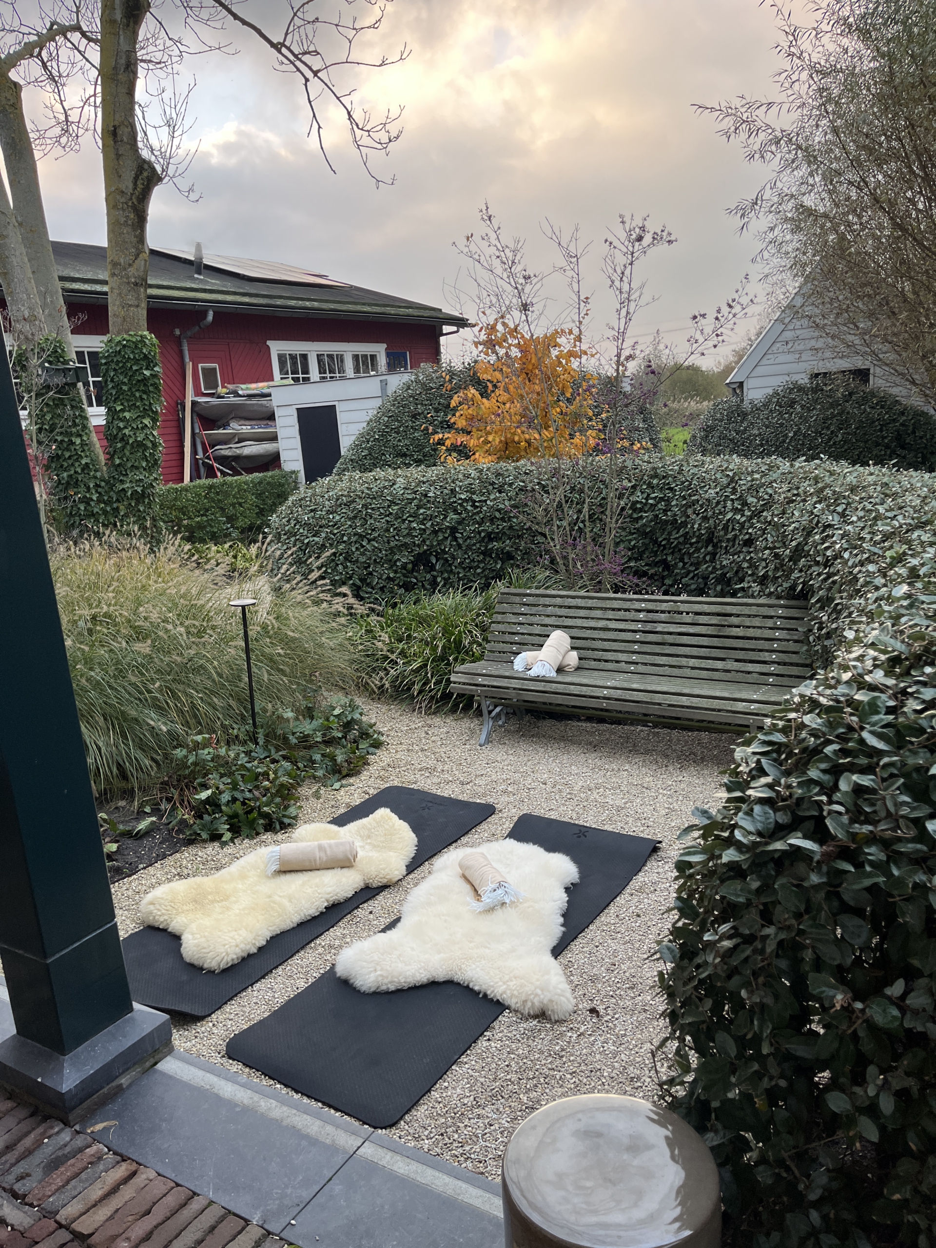 Naast mijn bedrijfstrainingen en meditatie avonden was ik recentelijk op een woonboot in hartje centrum en vandaag te gast bij een hotel waar een koppel een privé sessie geboekt had. Het werd een knusse outdoor sessie met de geluiden van de vogels op de achtergrond.